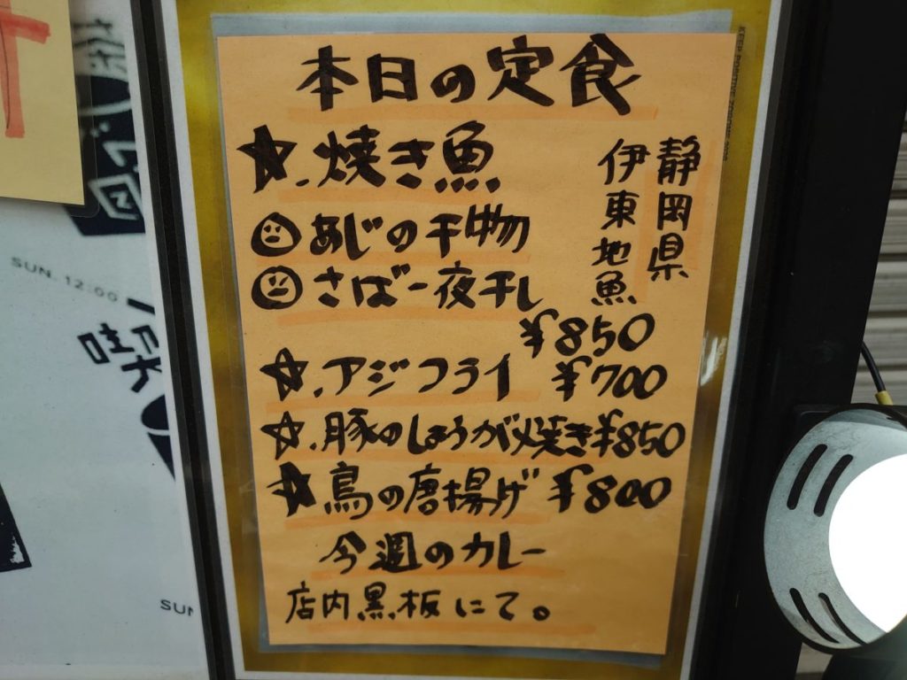 定食は焼魚定食、アジフライ、豚生姜焼き、ハンバーグやナポリタン、ルーロー飯まで。