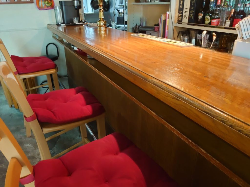 店内はハイチェアのカウンター席、横並びの2人掛けテーブル席が2組、ソファ席が1組。