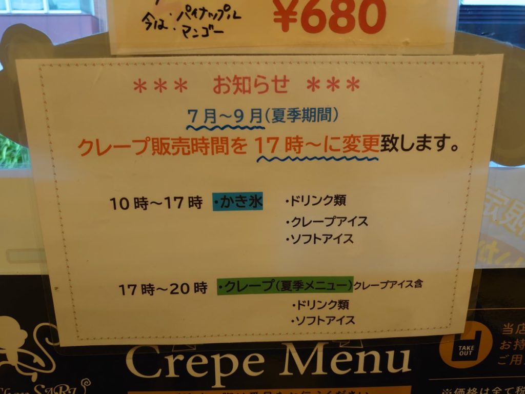 お店は12時のオープンですが、7月〜9月はクレープの販売が17時〜20時に限定されるとのこと。