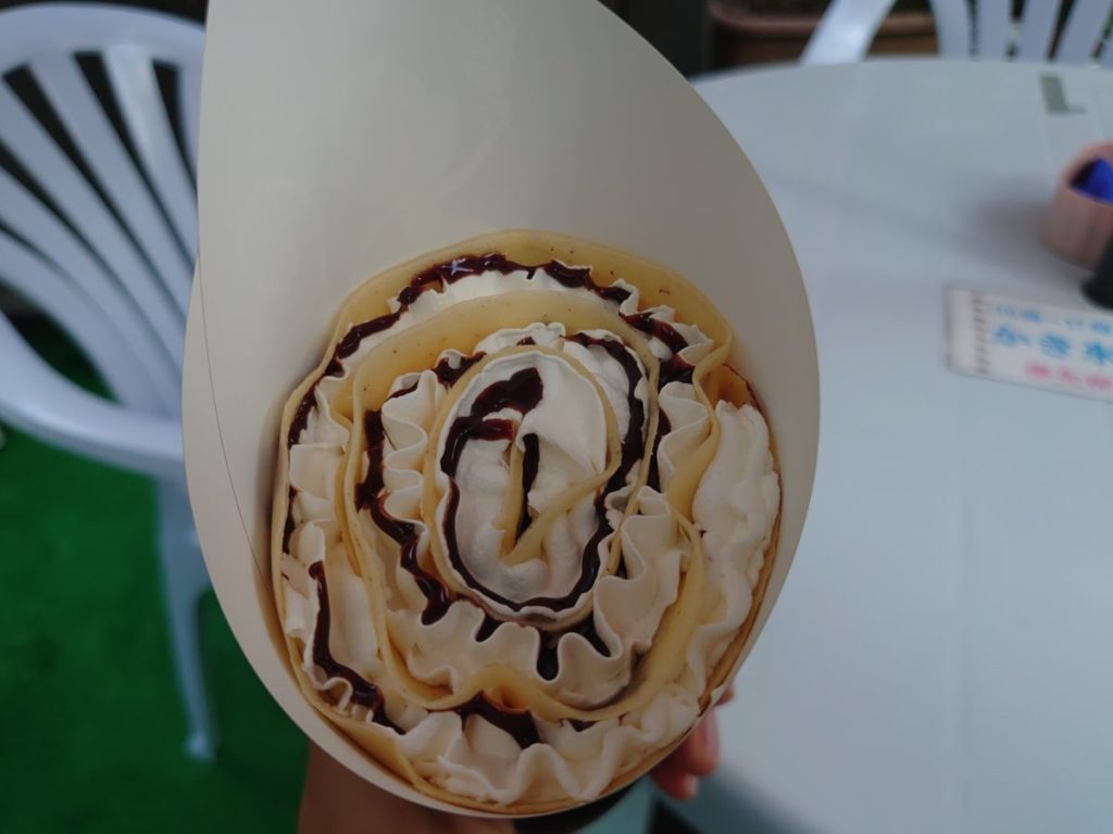 一番人気メニューのチョコバナナクリームを食べたいところでしたが、息子のリクエストでバナナ抜きのチョコクリームを注文しました。