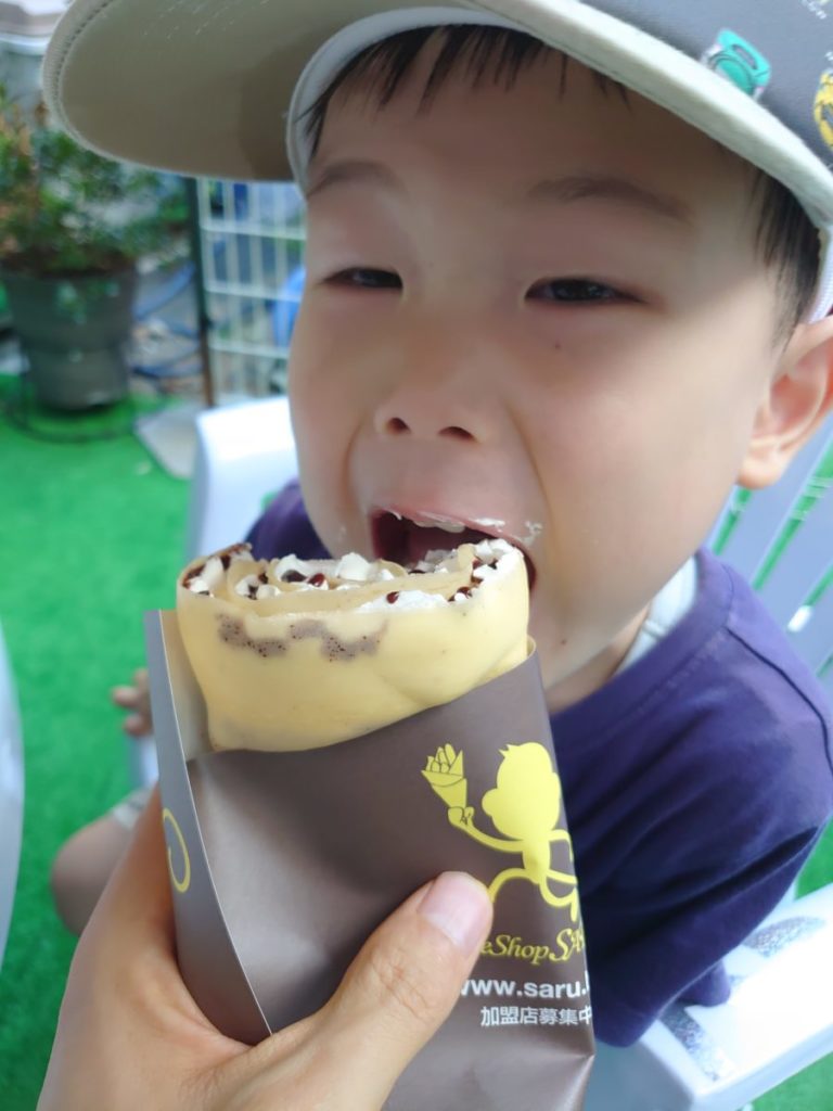 新丸子の「クレープショップ SARU(サル)川崎新丸子店」で、チョコクリームのクレープを。