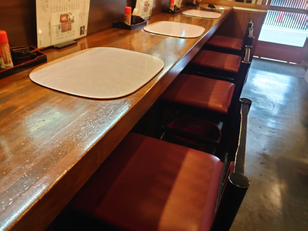 カウンター越しの提供で自分でお盆を下ろす流れ。