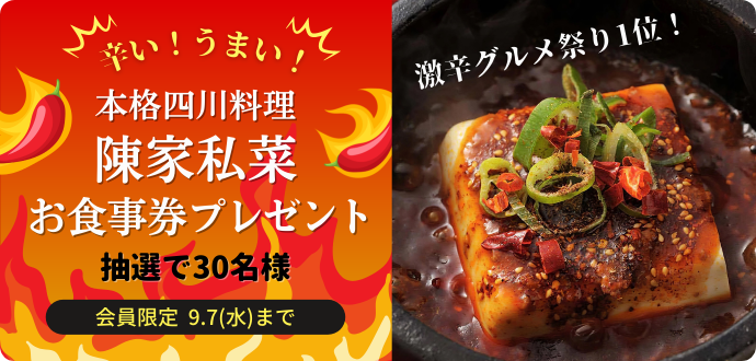 ▼「陳家私菜」お食事券プレゼントキャンペーン:2022年9月7日まで