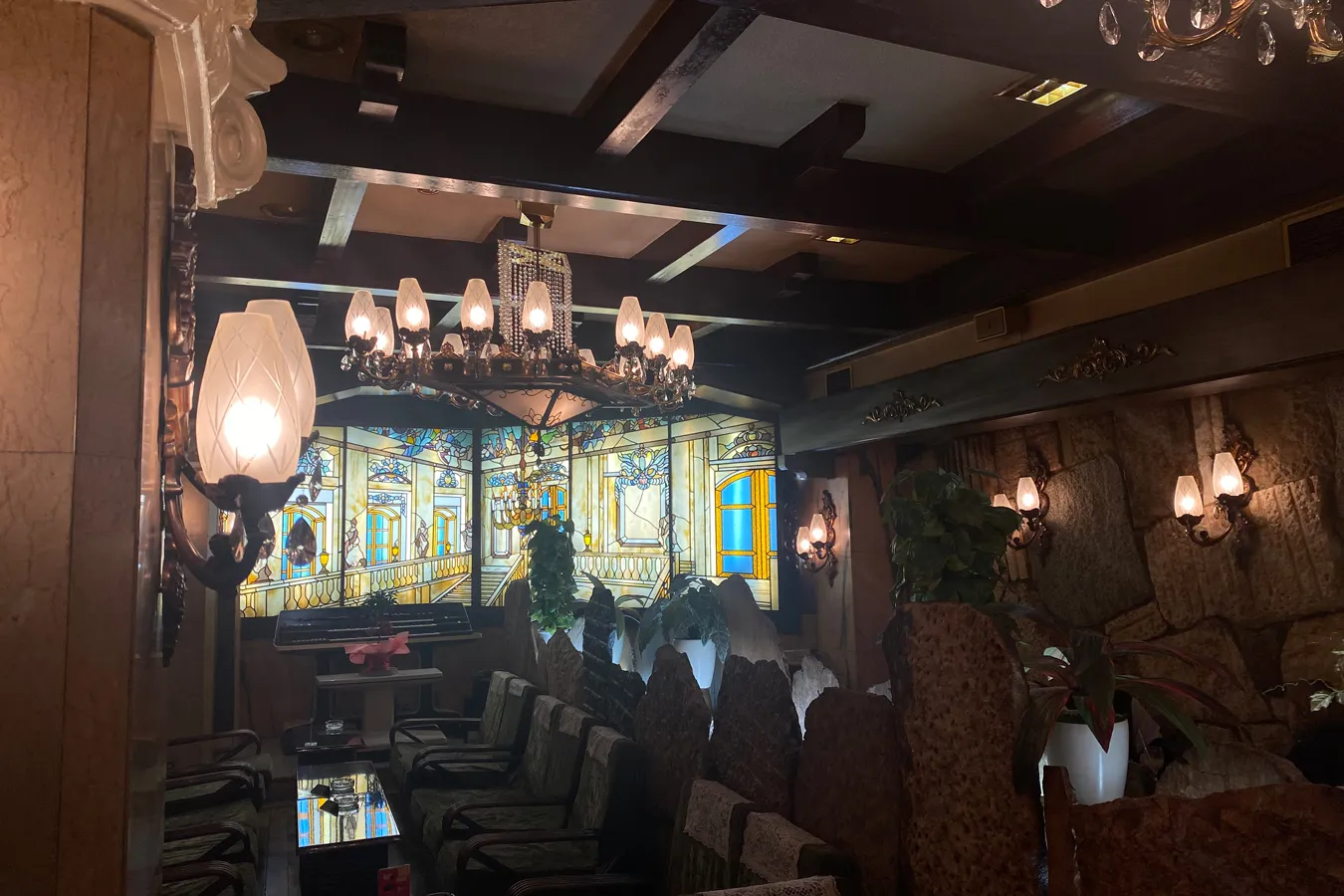 シャンデリアやステンドグラスでレトロ感満載の空間が目の前に飛び込んできました。