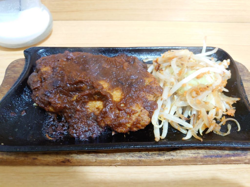 カウンター席に着いて、昼のセットメニューの中からハンバーグを注文しました。