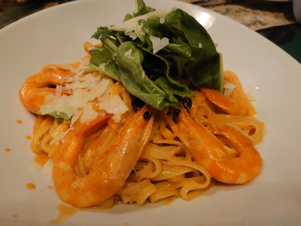妻が注文したパスタはクリーミーで濃厚な海老の香り。
