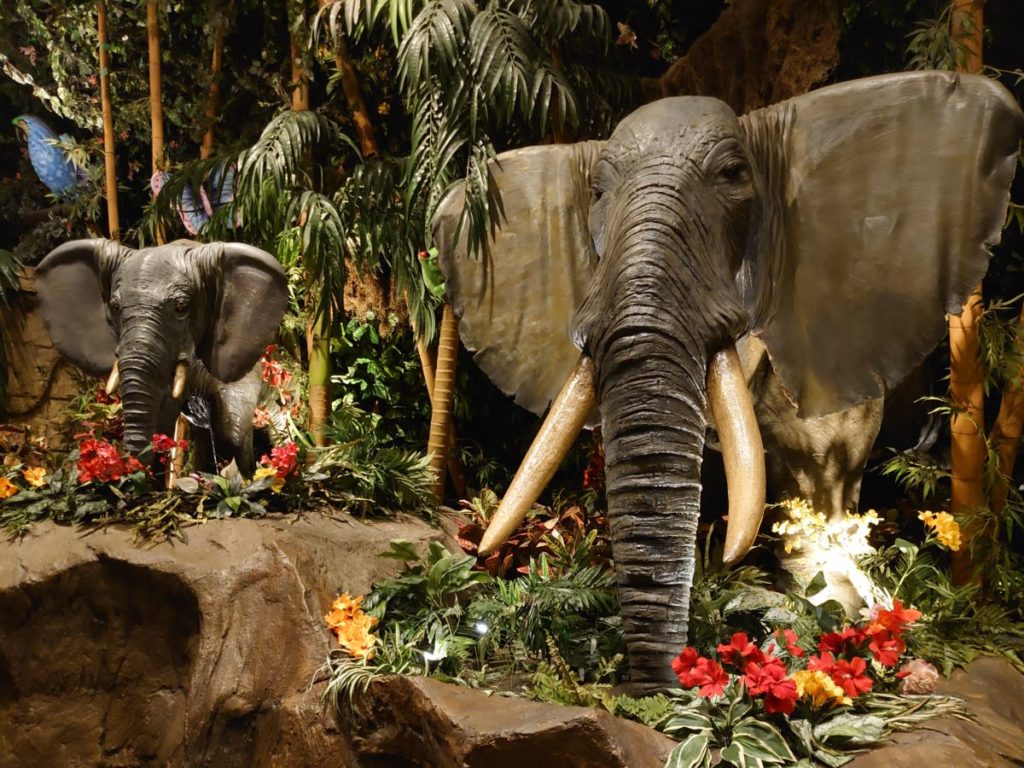 ゴリラやゾウは本物のように動いたり吠えたりと臨場感があります。