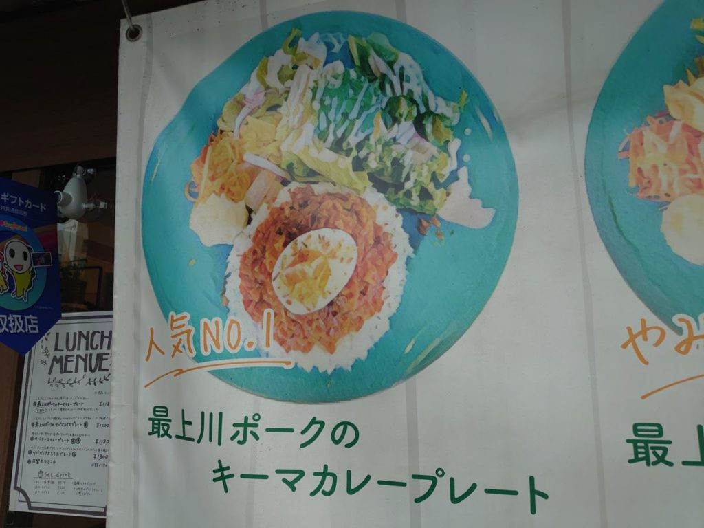 一番人気メニューで、初めての人におすすめの最上川ポークのキーマカレープレートを注文。