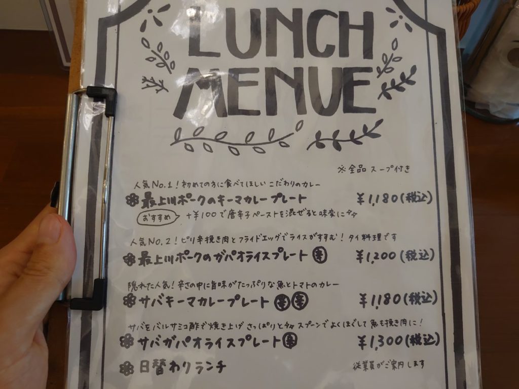 キーマカレーやガパオライス等、挽肉を使ったプレートメニューがラインナップされていました。