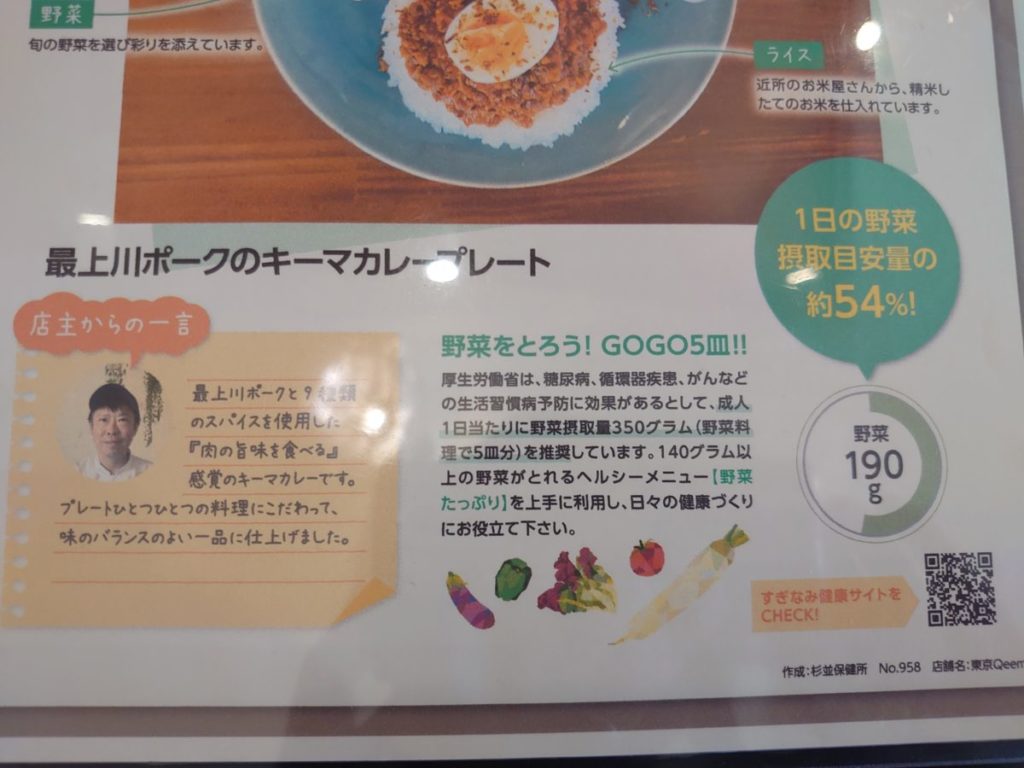 荻窪のたっぷり野菜と挽肉のお店「東京Qeema(キーマ)」で、ランチに最上川ポークのキーマカレープレートを。