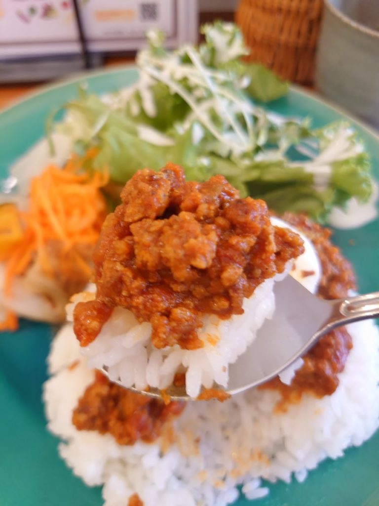 キーマカレーはスパイスが9種類も入っているものの辛さは控えめに感じました。